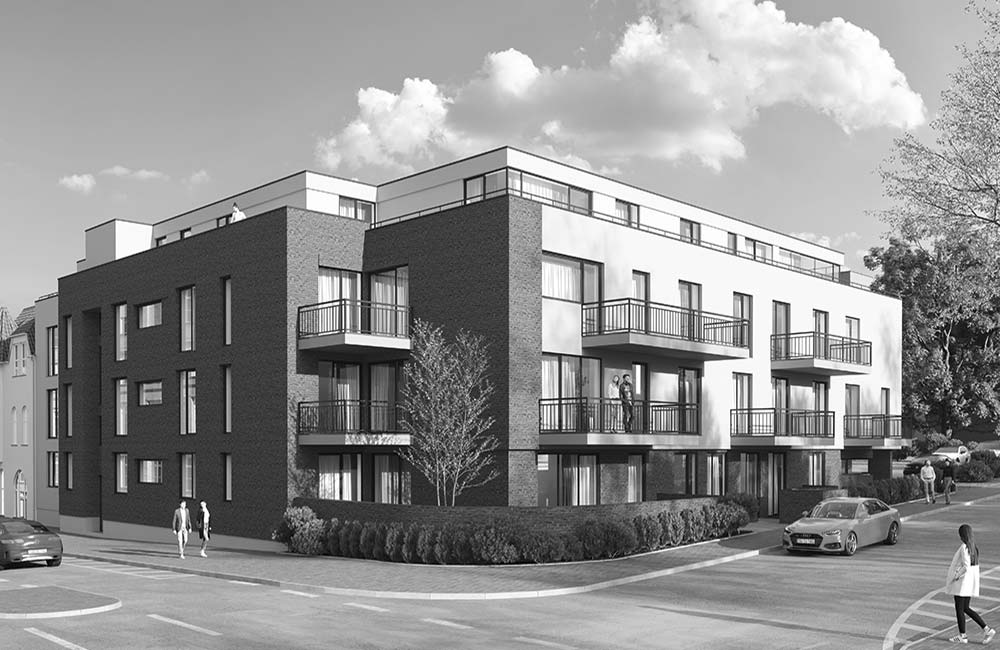 In Hilden-Mitte, unmittelbar am Park Holterhöfchen, in attraktiver, gleichwertiger Nachbarschaft sowie im fußläufigen, direkten Anschluss an die charmante City, entstehen straßenbegleitend nur vierzehn Eigentumswohnungen im beeindruckenden Neubau.