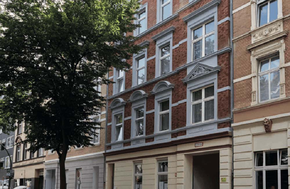 Am Lindenplatz und somit im stark nachgefragten Stadtteil der Landeshauptstadt Düsseldorf, Flingern Nord, steht straßenbegleitend und beeindruckend dieses nur Neun-Parteien-Gründerzeithaus aus dem Ursprung 1895 und teils in altem Backstein gehüllt.