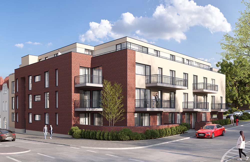 Alles in allem in dreieinhalbgeschossiger Bauweise inklusive oberirdischem, seitlich anliegendem Parkdeck.